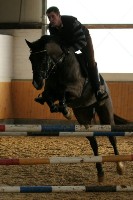 Auch Steffen war mit seinen Berittpferden höchst erfolgreich. Mit seinem Erfolgspferd, der Fuchsstute Victoria sammelte er zahlreiche Siege und Platzierungen bis zu Springpferdeprüfungen der Klasse M. Diese Uccello – Laptop – Tochter entstammt der Zucht von Erich Böhm, dem wir an dieser Stelle nocheinmal herzlich gratulieren möchten. Steffen und Victoria qualifizierten sich auch in diesem Jahr für das Hannoveraner Springpferdechampionat in Verden. Ebenfalls für Verden qualifizieren konnte sich die Scolari - Tochter Soleil de Vie aus der Zucht von Familie Tiedemann. Nach hohen Platzierungen in Reitpferdeprüfungen war die Qualifikation für das Hannoveraner Reitpferdechampionat der Höhepunkt der abgelaufenen Saison für diese Stute. Mit seinen beiden Wallachen Dark Dossier und Sandmann war Steffen in diesem Jahr bis zur schweren Klasse am Start. Mit dem De Niro - Sohn Dark Dossier konnte er mehrfach Dressurprüfungen der Klasse M gewinnen und war auf dem Dobrock - Turnier in der Klasse S am Start. Auch Sandmann konnte Dressurprüfungen der Klasse M für sich entscheiden. Weiterhin konnte er sich mit der Iberio - Tochter Indira sowhl in Eignungs- als auch Springpferdeprüfungen die goldene Schleife sichern.